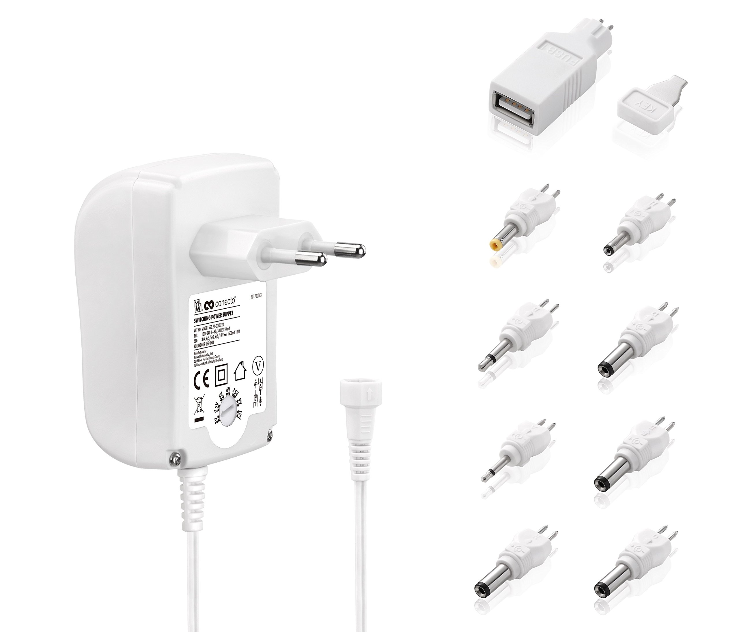 Arf ce chiffre est plus fort Ego vois approprié tonalité message ! J'héemploi avec celui-ci là maintenant en tenant lave vaiselle : conecto CC50223 Bloc d'alimentation universel (commutateur rotatif 3V 12V) avec 9 adaptateurs, y compris USB, max. 1500mA, blanc