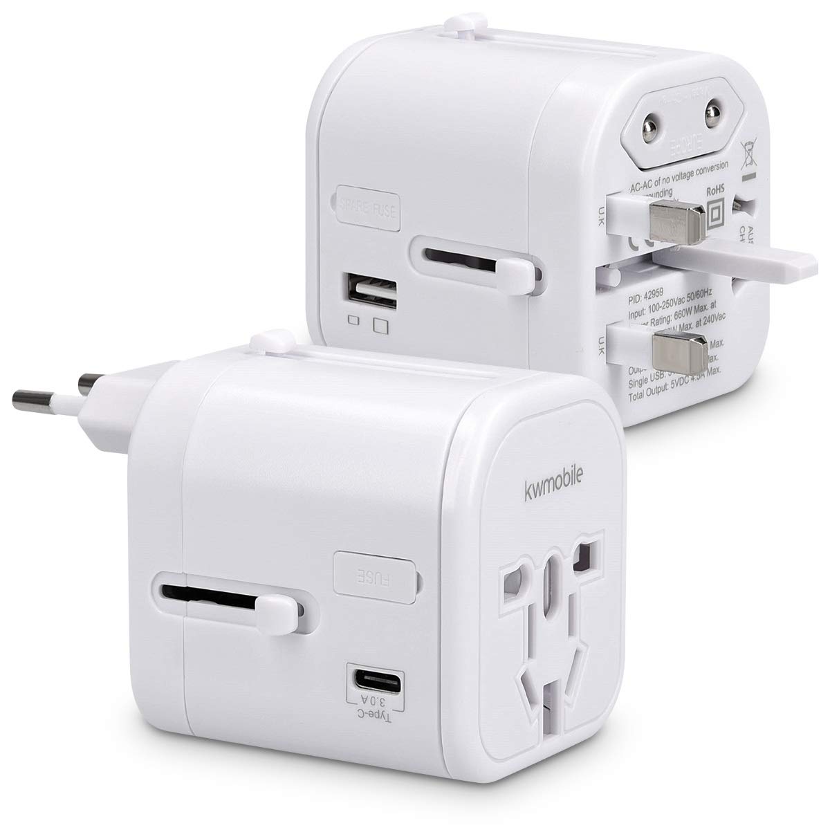 Arf ce chiffre est plus fort Ego vois approprié tonalité message ! J'héemploi avec celui-ci là maintenant en tenant lave vaiselle : kwmobile Adaptateur Universel 150 Pays - Prise Universelle Voyage 4 Ports USB - Port 3A Type C - Prises électriques Prises de Courant - Blanc