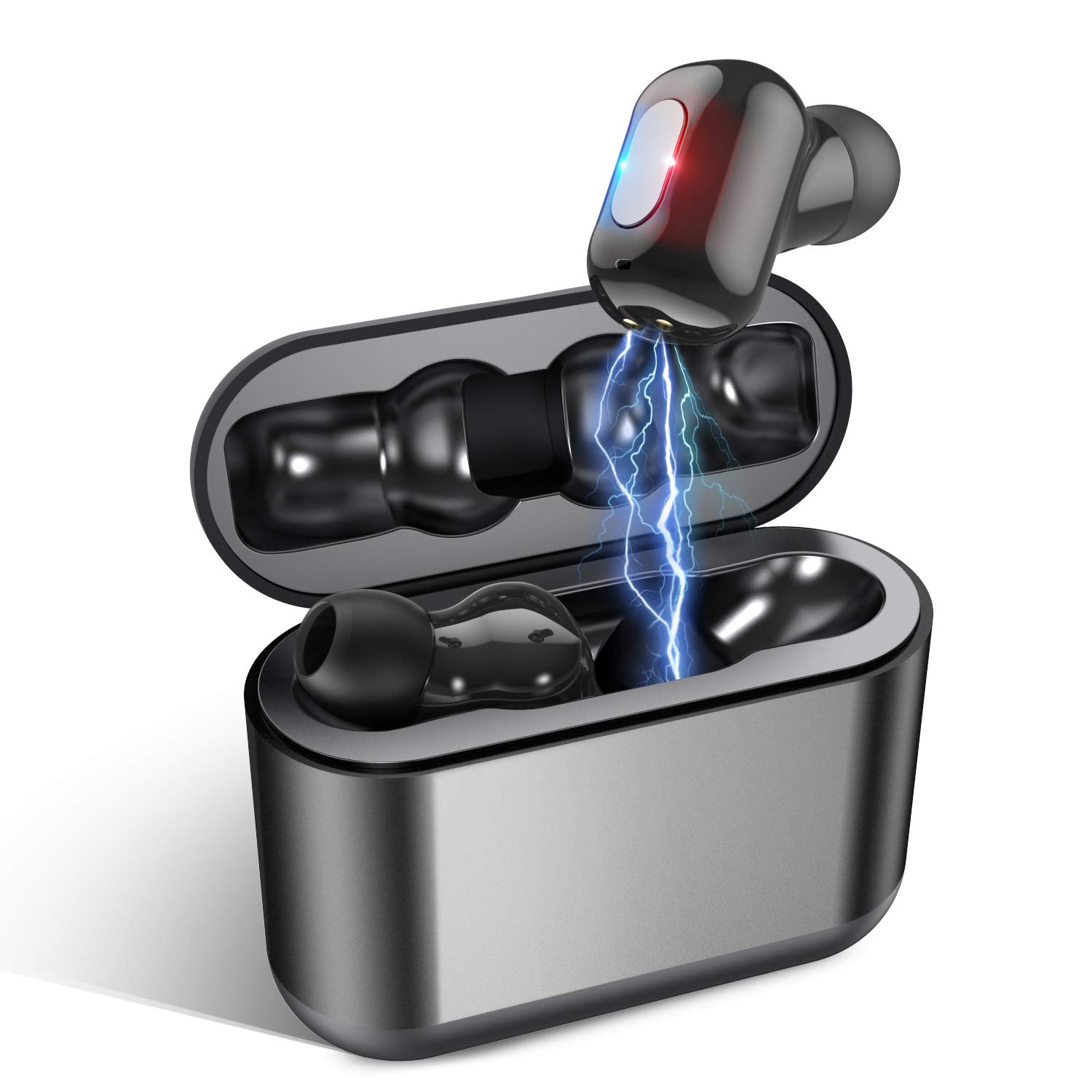 Garegce Écouteur sans Fil, Écouteurs Wireless Sport V5.0 TWS Stéréo Léger avec Boîte de Charge Autonomie Micro Intégré CVC 8.0 Réduction du Bruit Oreillette pour iPhone et Android - Noir